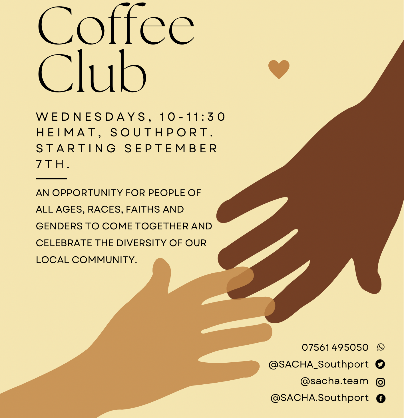 SACHA have a stall at a local community event, where we will be encouraging visitors to produce a small piece of art, showing their world reimagined. We will also be advertising the other works that SACHA carries out, including our ‘Coffee Club’.