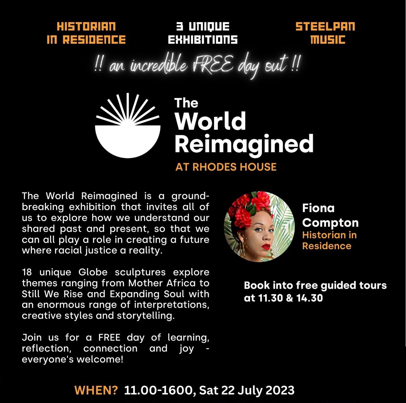 Join us at Rhodes House on Saturday 22 July 2023 for the exhibition’s first open day of the summer – and it’s free! With a soundtrack of live steelpan music, it’s going to be a day of learning, reflection, connection and joy for families and the community.